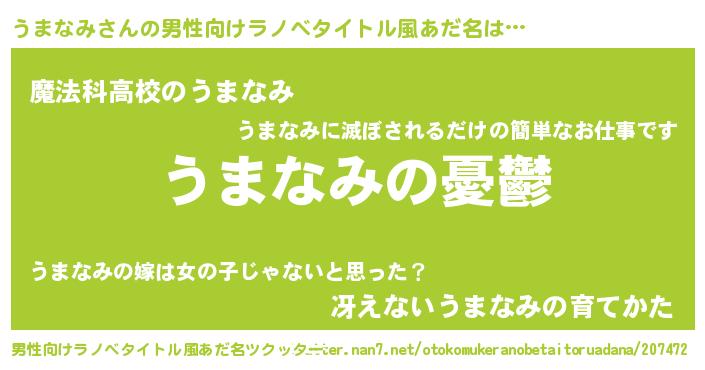 | 意味不明あだ名 | 『ペロリンうまなみ』『自称うまなみ』 |
