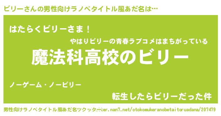 | 女子向けラノベタイトル風あだ名 | 『ビリーなんてお断りですっ。』 |