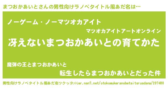 | 女子向けラノベタイトル風あだ名 | 『男装まつおかあいとの憂鬱な任務』 |