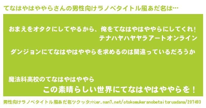 | 女子向けラノベタイトル風あだ名 | 『てなはやはややらは平凡を望む』 |