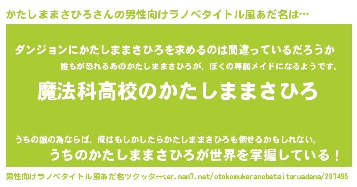 | 意味不明あだ名 | 『自称かたしままさひろ』 |