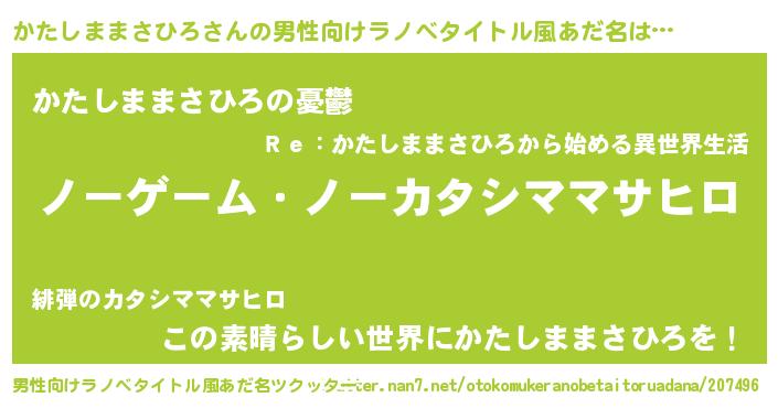 | 意味不明あだ名 | 『眠気覚ましガムかたしままさひろ味』 |