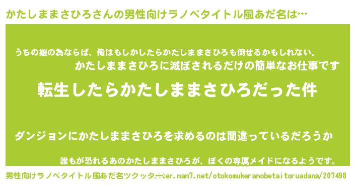 | 女子向けラノベタイトル風あだ名 | 『かたしままさひろの玉の輿計画!』 |