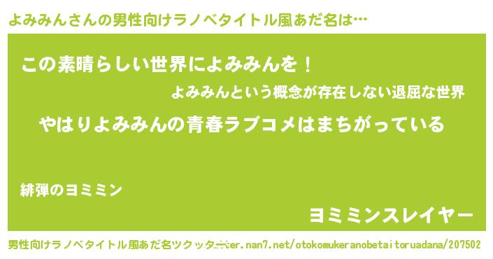 | ファンタジー風あだ名 | 『エターナルヨミミンー』 |