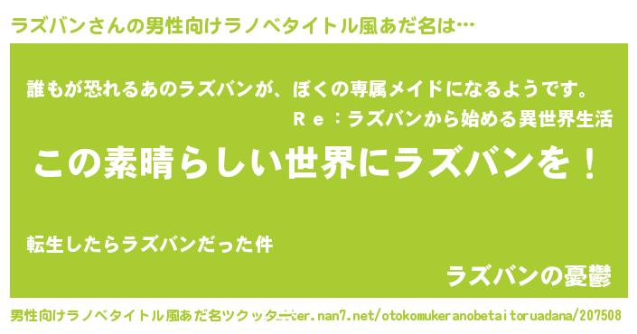 | 女子向けラノベタイトル風あだ名 | 『乙女ゲームの破滅フラグしかない悪役ラズバンに転生してしまった…』 |