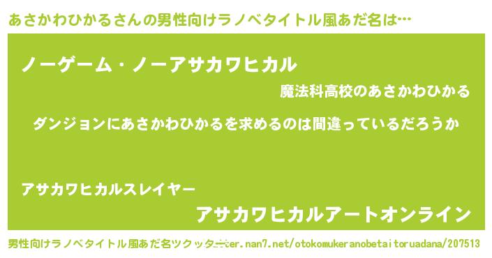 | 女子向けラノベタイトル風あだ名 | 『あさかわひかるの卵を拾いまして』 |