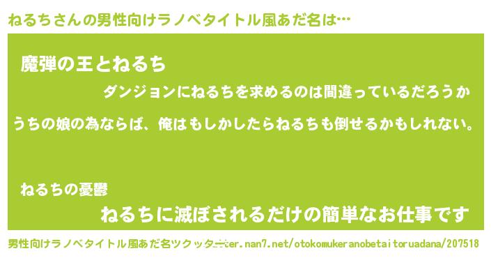 | 胡散臭い通販商品みたいなあだ名 | 『運命の人と巡り会える高級そうな絵画…その名も「ねるち」』 |