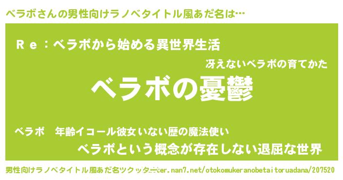 | 胡散臭い通販商品みたいなあだ名 | 『モテモテ間違いなし霊験あらたかなお札…その名も「べラボ」』 |