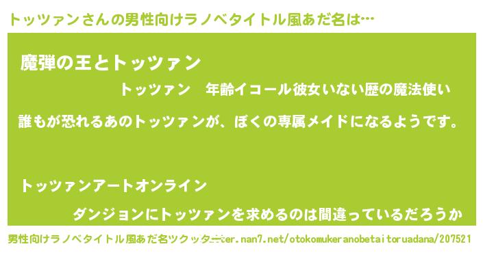 | 意味不明あだ名 | 『永久保存トッツァン』 |
