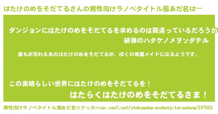 | 胡散臭い通販商品みたいなあだ名 | 『前代未聞の健康食品…その名も「はたけのめをそだてる」』 |