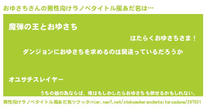 | 女子向けラノベタイトル風あだ名 | 『おゆさちの卵を拾いまして』 |
