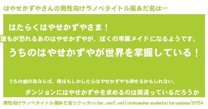 | ヒーロー風カッコイイあだ名 | 『炎刃騎士ハヤ』『ネオハヤセカズヤ』 |