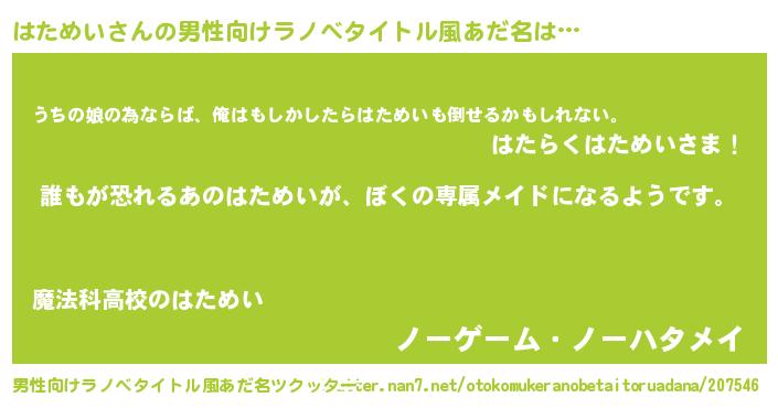| 女子向けラノベタイトル風あだ名 | 『異世界でカフェはためいを開店しました。』 |