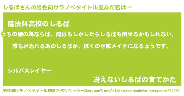 | 胡散臭い通販商品みたいなあだ名 | 『来世でも幸せになれる健康食品…その名も「しるば」』 |
