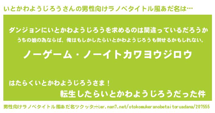 | 女子向けラノベタイトル風あだ名 | 『死神いとかわようじろうの再婚』 |