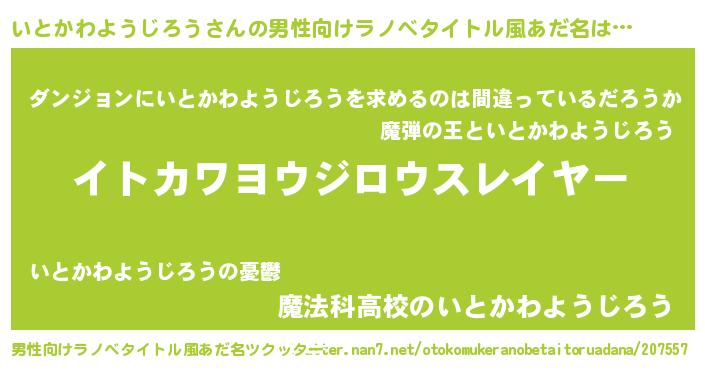 | 胡散臭い通販商品みたいなあだ名 | 『信頼と実績のサプリメント…その名も「いとかわようじろう」』 |