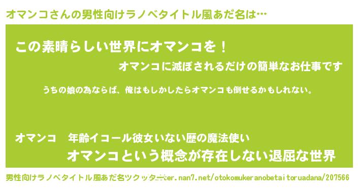 | 胡散臭い通販商品みたいなあだ名 | 『運命の人と巡り会える高級そうな壺…その名も「オマンコ」』 |