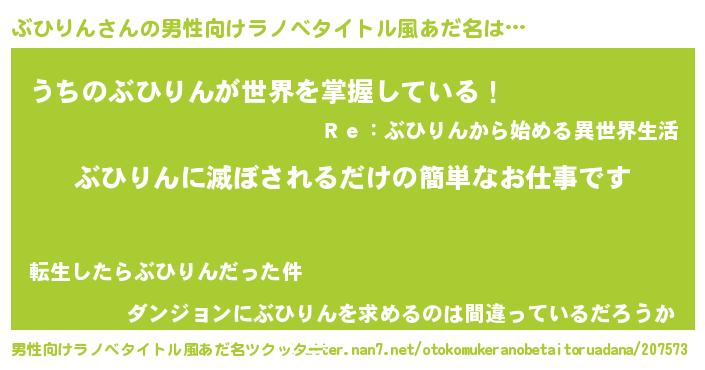 | 意味不明あだ名 | 『とにかく怪しいぶひりん』 |
