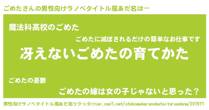| 胡散臭い通販商品みたいなあだ名 | 『テレビで話題のアガリクス…その名も「ごめた」』 |