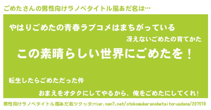 | 胡散臭い通販商品みたいなあだ名 | 『あなたにだけ特別に提供する世界で10本だけ現存している希少なブランデー…その名も「ごめた」』 |