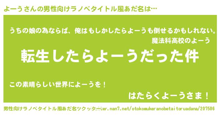 | 意味不明あだ名 | 『もやし科よーう属』『自称よーう』 |