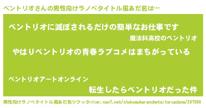 | 女子向けラノベタイトル風あだ名 | 『ベントリオの雑貨屋さん』 |
