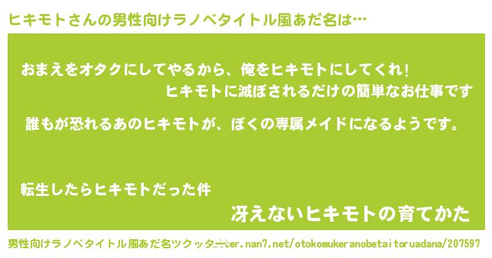 | 意味不明あだ名 | 『永久保存ヒキモト』『自称ヒキモト』 |