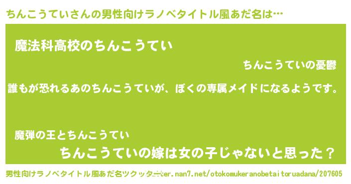 | ヘコむあだ名 | 『ちんこうてい(小並感)』『ちんを』 |