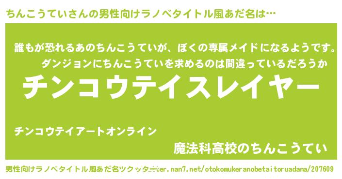 | 料理風あだ名 | 『ちんこうていごはん』 |