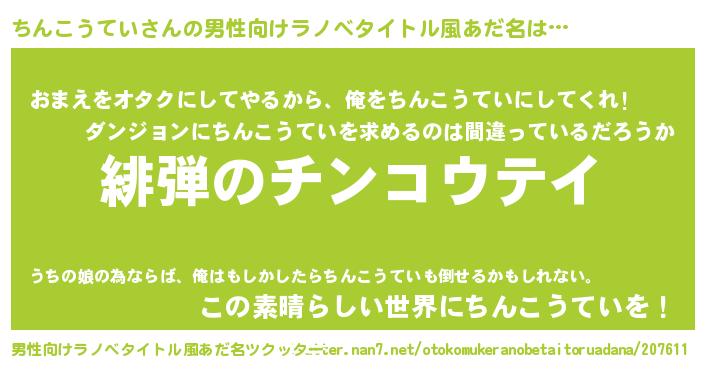 ちんこうていさんの男性向けラノベタイトル風あだ名をツクッター!