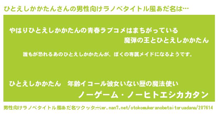 | ヒーロー風カッコイイあだ名 | 『ネオヒトエシカカタン』『仮面ヒトダー』 |