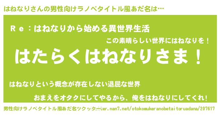 | 意味不明あだ名 | 『自称はねなり』『永久保存はねなり』 |