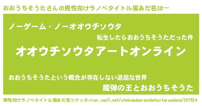 | 胡散臭い通販商品みたいなあだ名 | 『億万長者になれる霊験あらたかなお札…その名も「おおうちそうた」』 |