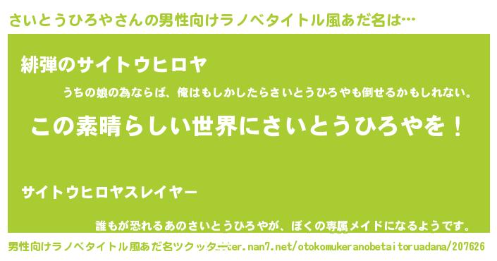 | 意味不明あだ名 | 『住所不定無職さいとうひろや(77歳)』 |