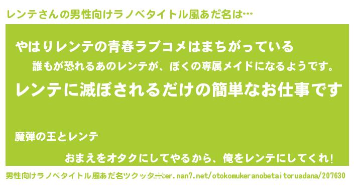 | 胡散臭い通販商品みたいなあだ名 | 『運命の人と巡り会える高級そうな壺…その名も「レンテ」』 |