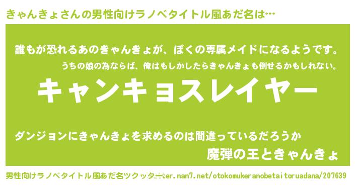 | ヘコむあだ名 | 『きゃんきょ(爆)』『牛乳』『きゃお』 |
