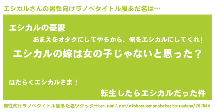 | 女子向けラノベタイトル風あだ名 | 『エシカル様がみてる』 |