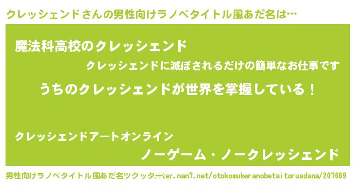 | 伝説のあだ名 | 『救世主となる錬金術士クレッシェンド』 |