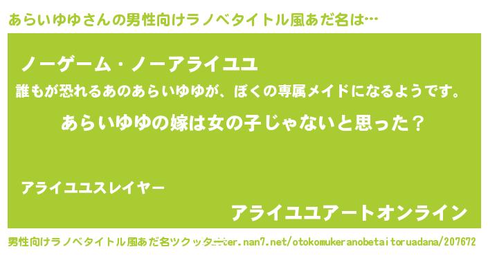 | 女子向けラノベタイトル風あだ名 | 『あらいゆゆ様がみてる』 |