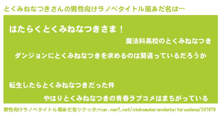 | 女子向けラノベタイトル風あだ名 | 『とくみねなつきは平凡を望む』 |