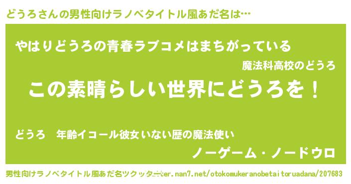 | 胡散臭い通販商品みたいなあだ名 | 『あなたにだけ特別に提供する世界で10本だけ現存している希少なブランデー…その名も「どうろ」』 |