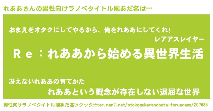 | ヘコむあだ名 | 『れああ(小並感)』『れあにー』 |