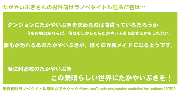 | ヘコむあだ名 | 『たかやいぶき(苦笑)』『たかっ子』 |