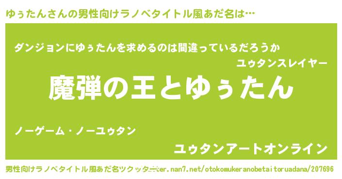| 女子向けラノベタイトル風あだ名 | 『ゆぅたんが死なない童話 林檎のゆぅたんの診療簿』 |