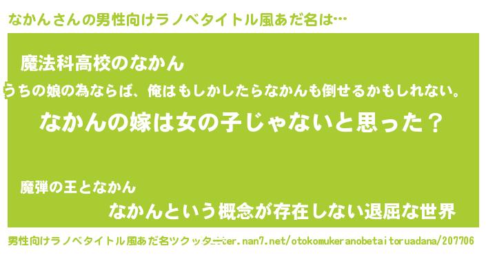 | 女子向けラノベタイトル風あだ名 | 『なかんの卵を拾いまして』 |