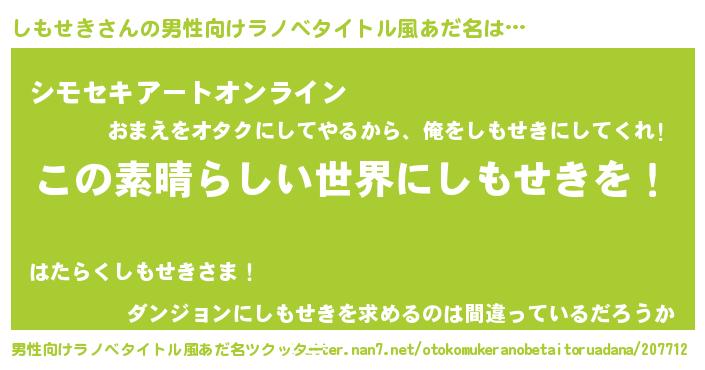 | ヘコむあだ名 | 『しもふぇ~』『しもぷりん』『豆乳』 |