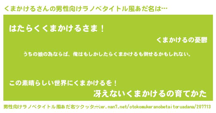 | ヘコむあだ名 | 『なまこ酢』『くまにー』『くまっ子』 |