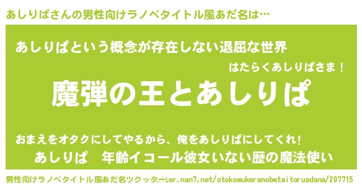 | 意味不明あだ名 | 『住所不定無職あしりぱ(1歳)』 |