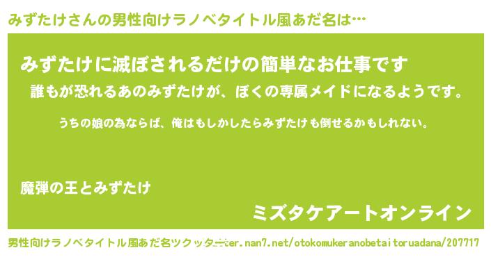 | 胡散臭い通販商品みたいなあだ名 | 『世界が平和になる高級そうな絵画…その名も「みずたけ」』 |