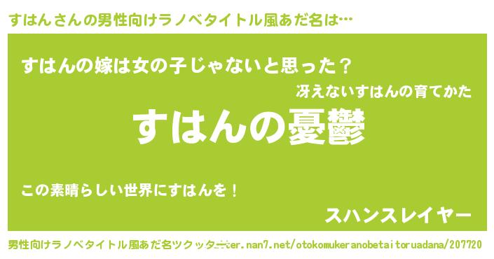 | 女子向けラノベタイトル風あだ名 | 『(仮)すはんのやんごとなき事情』 |